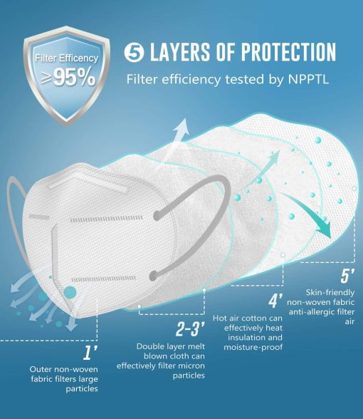 - Protección Multicapa: 5 capas y diseño tridimensional que filtran el 95% de las partículas en el aire.
